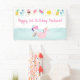 This cute birthday banner features adorable colourful summer illustrations with faux gold foil accents.