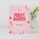 Saddle up your friends and loved ones to your little cowgirl's first rodeo birthday celebration with our modern, minimal western invitation. This design includes simple elements in modern and bold red, pink and white.