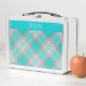 An aesthetic pretty teal blue and pink plaid metal lunch box. This lunch box features a whimsical yet traditional teal blue and pink tartan pattern. This beautiful design also features a place to customise and add a name. This is the perfect back to school supply for the girl on your back to school list!