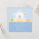 This 5.25x5.25 square girls princess birthday party invitation is an adorable invite to announce your party! There is a baby blue polkadots background on the top half, with a sold blue background colour on the bottom half. It has a carriage in the middle with a little frog and a slipper on a pillow next to it. You can easily customise your party information on the bottom half of the invite. Some of the elements used in this are Copyright © Zenware Designs