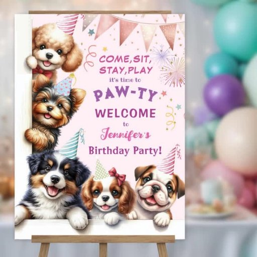 Girls Puppy Lets Pawty 7th BirthdayDesigned by H-Art Studio Design