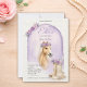 This girls purple floral horse birthday invitation features a soft watercolor palomino pony with lavender flowers and greenery. Designed for a pony birthday party or cowgirl party theme, this elegant yet playful invitation is perfect for young horse lovers celebrating ages 6, 7, or 8. The refined floral details and gentle palomino portrait create a charming horse-themed birthday invitation that pairs beautifully with matching party decorations, supplies, and personalised gifts.