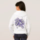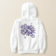 This cool girl's volleyball hoodie features an "explosion" of varied size purple, grey and white volleyballs and purple, grey and white star shapes - the volleyballs' purple and grey panels are blended with a girly, floral kaleidoscopic pattern - customise with athlete's name and jersey number - design is on the back of the hoodie but can be moved to or duplicated on the front - by katz_d_zynes