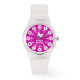 Graphic art kids watch featuring a simple white butterfly. Great for school age girls learning to read a clock as features both minutes and hours. Customise with your full name example reads Yvette Collins. Great for school and sports as features your girls full name.