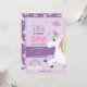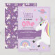 Girls Purple Rainbow Unicorn Kids 1st Birthday Invitation