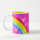 Bright and colourful rainbow your name kids mug. Perfect gift for a vibrant child. Mug reads: Hannah or personalise this mug with the name of your choice up to 6 letters. Mug designed exclusively by Sarah Trett.