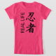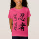 The Japanese Kanji on the right says "Ninja". Drechsel chose the Japanese Kanji to show respect for the original Ninja Warrior show in Japan called "Sasuke", which he has competed in for several years.
