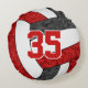 This cute volleyball themed throw pillow features the image of a realistic volleyball that has red, black and white panels, upon which you can customise the player's name, monogram or varsity letter, team and mascot name on the front and jersey number on the back - the volleyball's red & black panels are blended with an artsy, floral kaleidoscopic pattern for a textured appearance - by katz_d_zynes