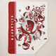 This cool girl's basketball themed Sherpa fleece blanket features an "explosion" of red and white basketballs in varying sizes and grey and red star shapes - the red star has a tiny pattern of white polka dots - customise with player's name and jersey number - the red colour strip at the bottom edge is customisable - katz_d_zynes