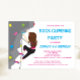 Rock climbing birthday party invitation with rock wall and climber on a choose your own background and text colour. You can easily customise this children's any number rock climbing birthday party invitation for your event by simply adding your details in the font style of your choice.
