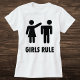 Showcase your confidence and celebrate girl power with this "Girls Rule" Empowerment T-Shirt. Featuring a bold black graphic of a girl playfully asserting her strength over a boy, this design is both fun and empowering. The striking black-and-white imagery paired with the strong message "Girls Rule" makes this t-shirt a standout piece in any wardrobe.