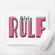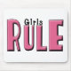 Girls Rule T-shirts, mugs, tote bags, cards, stickers, keychains, and more with bright pink and black text design.