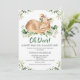 Sweet woodland deer themed baby shower invitation for a little girl's. This design features a lovely deer, small floral arrangement some greenery and a watercolor brush calligraphy heading.