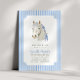 Saddle on up and gather your friends and loved ones to celebrate your daughter's preppy pony party! This design features a coquette-inspired white horse with blue bows and a soft hand painted striped pattern.