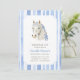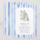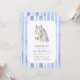 Saddle on up and gather your friends and loved ones to celebrate your daughter's preppy pony party! This design features a coquette-inspired white horse with blue bows and a soft watercolor striped pattern.