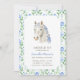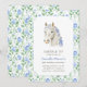 Saddle on up and gather your friends and loved ones to celebrate your daughter's preppy pony party! This design features a coquette-inspired white horse with blue bows and a soft watercolor floral toile pattern.
