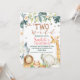 Girl's safari animals themed two wild birthday invitation featuring five watercolor jungle animals, some tropical foliage and flowers. Great for a girl's two wild themed birthday party and a cute way to invite guests.