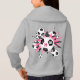 This sporty girl's soccer hoodie features an "explosion" of varied size soccer balls and pink, black and white star shapes - a tiny white polka dots pattern overlies the black star - customise with athlete's name, monogram and jersey number - design is on the back of the hoodie but can be moved to or duplicated on the front - by katz_d_zynes