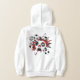 This sporty girl's soccer hoodie features an "explosion" of varied size soccer balls and red, black and white star shapes - a tiny white polka dots pattern overlies the black star - customise with athlete's name, monogram and jersey number - design is on the back of the hoodie but can be moved to or duplicated on the front - by katz_d_zynes