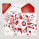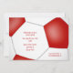 This cute soccer party invitation features an "explosion" of varied size red & white soccer balls and red & grey comic-style star shapes on the front and an abstractly oversized soccer ball on the back - each of the soccer balls' typically black panels has been recolored red - customise the party details to suit your celebration - by katz_d_zynes