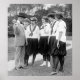 Early 1900s photo of girl softball players in bloomers: Francis Bloome, Mary Cook, Lucile Boyd, Gertrude Cherry and Ruth Jane Bauske. Photograph taken in 1919.