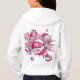 This fun girl's basketball hoodie features an "explosion" of varied size basketballs that have alternating pink and white recolored panels and pink, grey and white star shapes - customise with athlete's name, monogram and jersey number - design is on the back of the hoodie but can be moved to or duplicated on the front - by katz_d_zynes