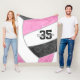 This cosy volleyball themed fleece blanket for her features the image of an abstractly oversized pink, black and white stylised volleyball that covers the entire blanket - personalise with the athlete's name and jersey number - by katz_d_zynes