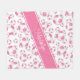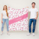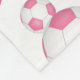 This cute soccer themed fleece blanket for girls features a pattern of varied size soccer balls turned every which way - the black panels on the soccer balls have been recolored pink - customise with soccer player's name on a chunky full width angled pink colour strip - by katz_d_zynes