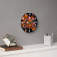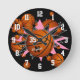 This cool girl's basketball themed wall clock features an "explosion" of varied size basketballs and pink, black and white star shapes - customise athlete's name, monogram and jersey number and black background - by katz_d_zynes