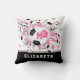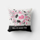 This cool girl's soccer throw pillow features an "explosion" of pink, black & white soccer balls in varying sizes and pink and grey star shapes, upon which you can personalise her monogram - the pink star has a tiny pattern of white polka dots - customise the athlete's name on a black colour strip at the bottom edge of the pillow - katz_d_zynes