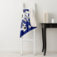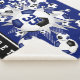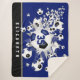 This cool girl's soccer themed Sherpa fleece blanket features an "explosion" of blue, black and white soccer balls in varying sizes and grey and blue star shapes - the blue star has a tiny pattern of white polka dots - customise with player's name and jersey number - the blue background and black colour strip at the bottom edge are customisable - katz_d_zynes