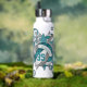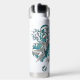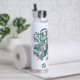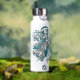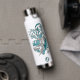 This cool girl's volleyball water bottle features an "explosion" of varied size teal, grey and white volleyballs and teal, grey and white star shapes - the teal and grey volleyball panels are blended with a girly, floral kaleidoscopic pattern - customise with athlete's name and jersey number - by katz_d_zynes