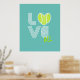 A fun poster for tennis players and tennis teams. This wall art poster reads “love all” with a neon green tennis ball design.
