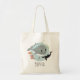 This trendy kids tote bag features a blue whale, orca, fish, and seaweed, and space to add a name in simple typography. The perfect modern and whimsical design for any ocean-lover!