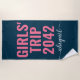 Girls' Trip 2024 Blue Pink Calligraphy Monogram Beach Towel