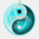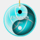This volleyball yin and yang themed ornament features semitransparent black and white yin and yang elements that reveal a minimalistic volleyball (represented only by its seams in white) and a customizable turquoise background - customize with her name and year, front and back - by katz_d_zynes