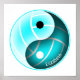 Sporty girls' volleyball themed yin and yang poster (12" x 12") featuring semitransparent black and white yin and yang elements that reveal a minimalistic volleyball (represented only by its seams in white) and a customizable turquoise background - personalize with her name - by katz_d_zynes