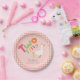 This cute and whimsical girls 2nd birthday paper plate design features a silly goose with a pink party hat, and can be personalised with your girls name. The perfect farm design for your little one's second birthday!