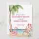 Watercolor Beach Destination Bachelorette Weekend Invitation. A cool watercolor beach theme with shades of pink and teal, setting the vibe for a beach escape with the bride and her besties. From trips to Florida, California, or even something more international like Mexico, Hawaii or The Bahamas, this girls weekend is going to rock! Cute pink and white beach chair, umbrella, and even a flamingo floaty for some extra fun. Palm trees swaying, shells to collect—it's all about those chill tropical beach vibes. With modern fonts adding a stylish twist, it's the perfect look for your bachelorette weekend. Just you and your crew, making memories against a backdrop of sand and sea. If you want a little more 'pizzaz' on the front, there are two hidden art objects for the top right corner - a sun, or a second palm tree. Just tap on the 'eye' icon next to them in the design editor to make them appear. Check out all of the coordinating pieces too!