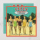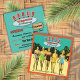Fabulous Girls Weekend Getaway Party with a reworked vintage postcard of a group of pretty girls strolling down the beach in the bathing suits. Soft focus with slight textures of a vintage postcard. Hand drawn illustration of a retro sign to welcome your gals or guy friends to a great weekend.