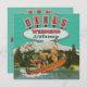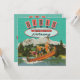 Fabulous Girls Weekend Getaway Party with a reworked postcard of two girls and a guy balancing in a canoe in the bathing suits with a mountain background. Soft focus with slight textures of a vintage postcard. Hand drawn illustration of a retro sign to welcome your gals or guy friends to a great weekend.