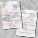 Dive into a retro summer pool party with this playful and vibrant invitation, perfect for a Palm Springs getaway or a fun girls' weekend in destinations like New Mexico or Tucson. The front features an aqua blue pool at the centre, surrounded by a pink pool deck and wall, with bright yellow lounge chairs and lush green palm trees in the background. This design exudes a cute, retro vibe that sets the tone for a stylish summer bachelorette party or weekend escape.