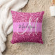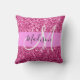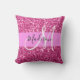 Girly and glam hot pink glitter sparkles white monogram name and initial throw pillow. Your custom name and monogram are written in an elegant hand lettered script with a pink background. A perfect birthday or Christmas gift!