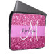 Girly and Glam Hot Pink Glitter Sparkles Monogram Laptop Sleeve