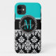 Girly Aqua Black Damask Your Monogram Name Case-Mate iPhone Case