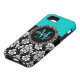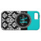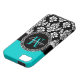 Girly Aqua Black Damask Your Monogram Name Case-Mate iPhone Case