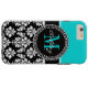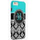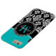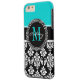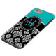 Girly Aqua Black Damask Your Monogram Name Case-Mate iPhone Case