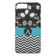 Girly Aqua Black & White Chevron Monogram Name Case-Mate iPhone Case