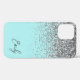 Girly Aqua Blue - Silver Faux Sparkle and Dripping Glitter Brushed Metal Monogram Name and Initial Phone. This makes the perfect sweet 16 birthday, wedding, bridal shower, anniversary, baby shower or bachelorette party gift for someone that loves glam luxury and chic styles.
