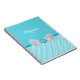 Add a touch of country charm to your personal style with this girly aqua and white bias gingham pattern notebook with a cute sheer white bow decorated with pretty pearls and a light blue rosette ribbon. This feminine light blue design can be personalised by adding your name. Flat printed image, not actual ribbon.